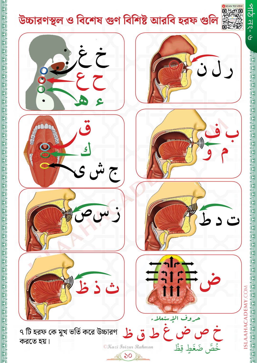 L-6: উচ্চারণ স্থল ও বিশেষ গুণ বিশিষ্ট আরবী হরফ গুলি